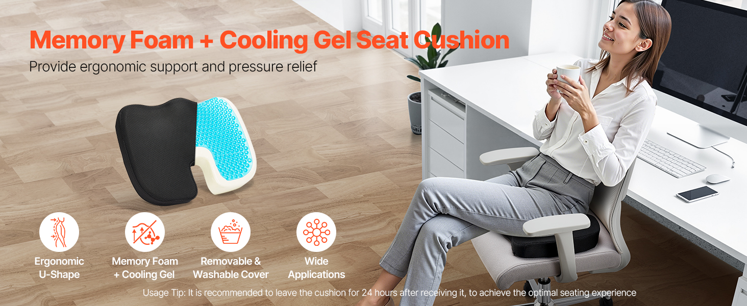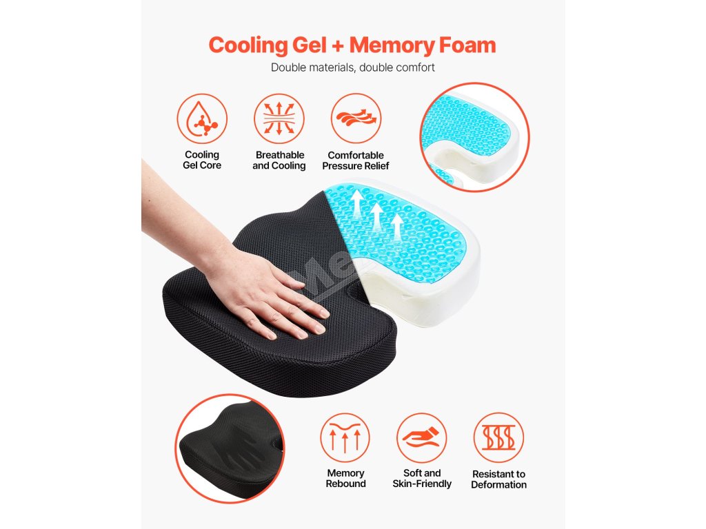 Tento sedací vankúš kombinuje dva prémiové materiály, ktoré poskytujú výnimočnú oporu, úľavu od tlaku a väčšie pohodlie. Chladiaci gél udržiava chlad a priedušnosť, zatiaľ čo pamäťová odrazová pena ponúka vynikajúcu mäkkosť a pohodlie, ideálne na použitie v kancelárii, aute alebo na vozíku.