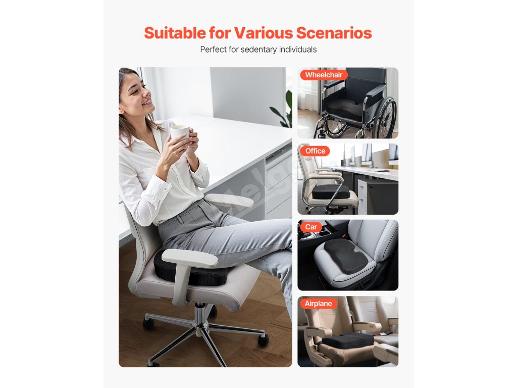 Či už pracujete dlhé hodiny, šoférujete alebo počas tehotenstva, náš sedací vankúš poskytuje ergonomickú podporu, zmierňuje tlak na boky, podporuje krvný obeh a účinne zmierňuje nepohodlie spôsobené dlhodobým sedením.