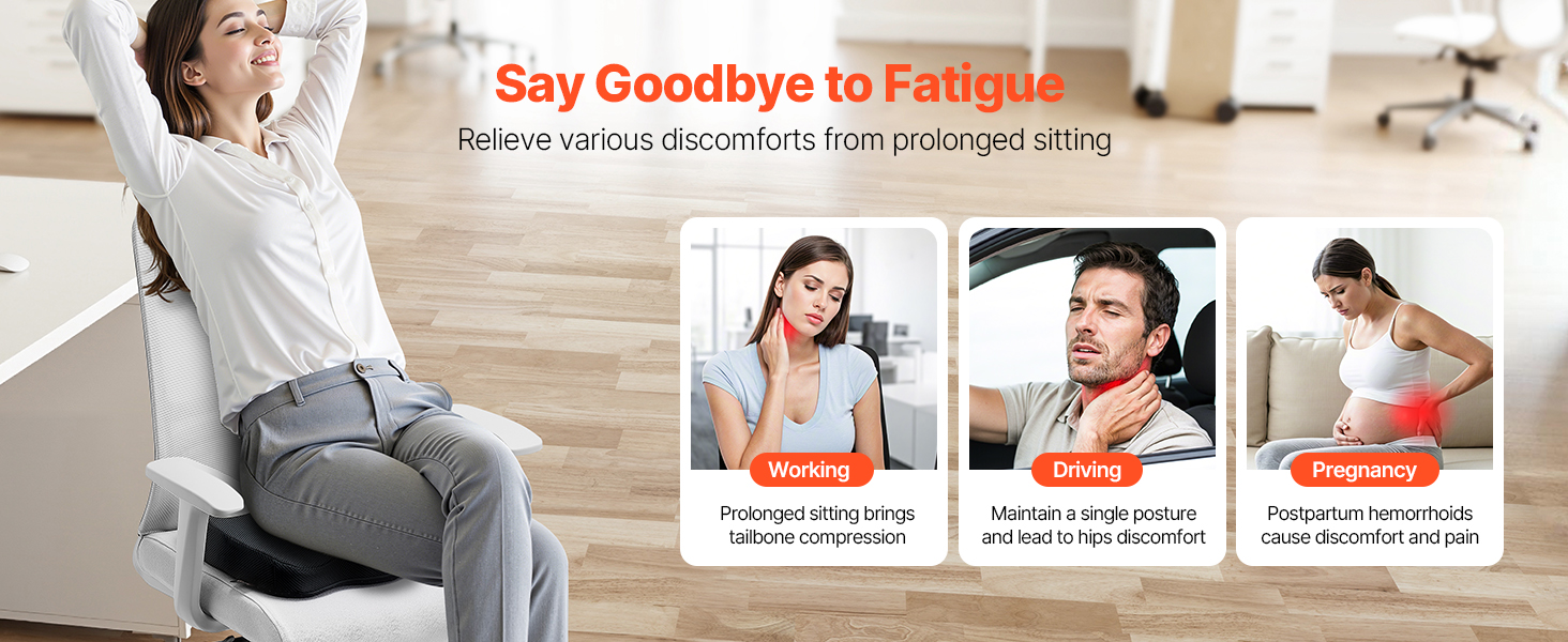 Tento prenosný sedací vankúš ponúka ergonomickú úľavu pri bolestiach bedier, bedrovej oblasti, chrbta, podporuje zdravé držanie tela pri sedení a poskytuje pohodlné sedenie pri dlhšom používaní. Dlhšie sedenie s menším nepohodlím a únavou.
