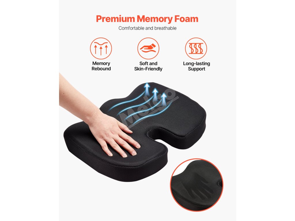 Tento sedací vankúš poskytuje výnimočnú oporu a úľavu od tlaku vďaka výrezu v tvare písmena U a ergonomickému tvarovaniu, čím podporuje zdravšie držanie tela a pohodlie počas dlhého sedenia. Prémiová pamäťová pena ponúka vynikajúcu mäkkosť a pohodlie, ideálne na použitie v kancelárii, aute alebo na invalidnom vozíku.