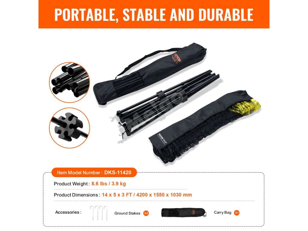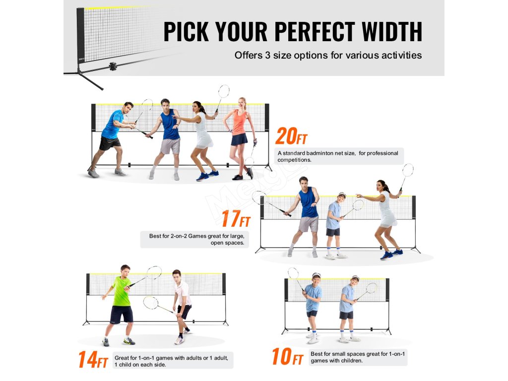 Nastaviteľná sieť na badminton, volejbal a pickleball, šírka 14ft