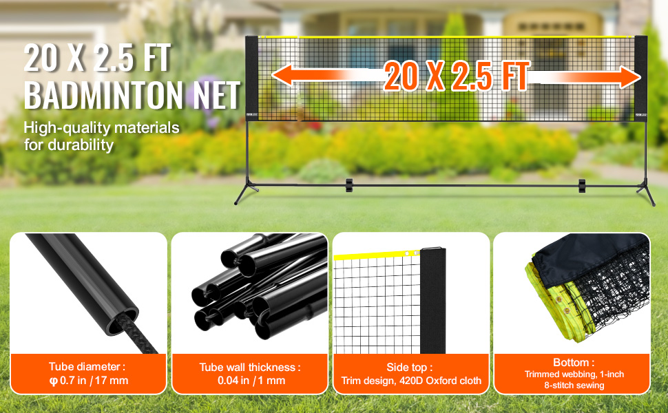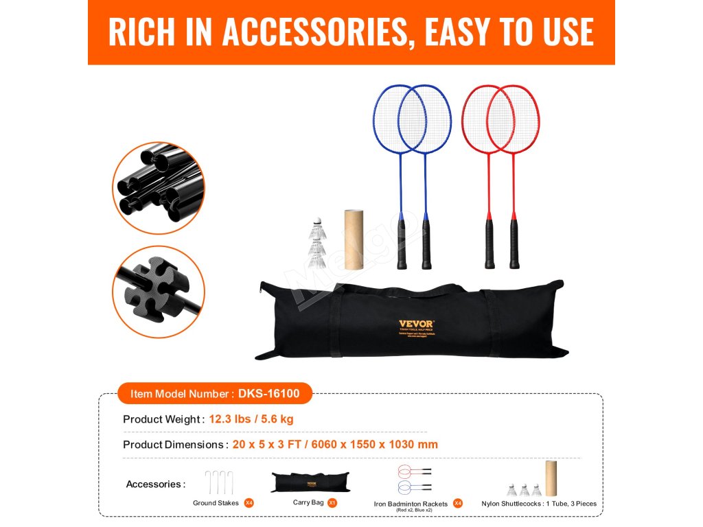 Prenosná sieť 20ft pre badminton, volejbal, tenis, pickleball
