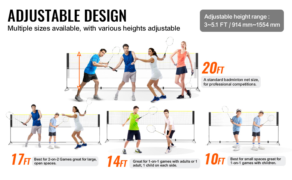 Užite si neobmedzenú zábavu na dvore s našou všestrannou tréningovou súpravou siete. S nastaviteľnou výškou od 3 stôp do 5,1 stôp môžete sieť ľahko prepínať z vysokej na nízku, s ešte nižším nastavením na pickleball, tenis a futbalový tenis.