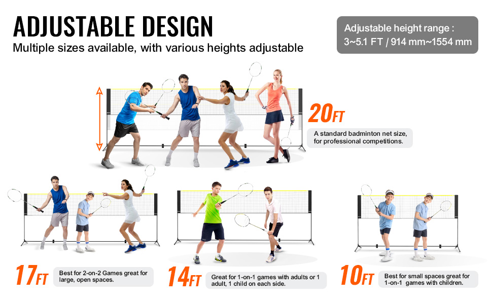 Užite si neobmedzenú zábavu na dvore s našou všestrannou tréningovou súpravou siete. S nastaviteľnou výškou od 3 stôp do 5,1 stôp môžete sieť ľahko prepínať z vysokej na nízku, s ešte nižším nastavením na pickleball, tenis a futbalový tenis.