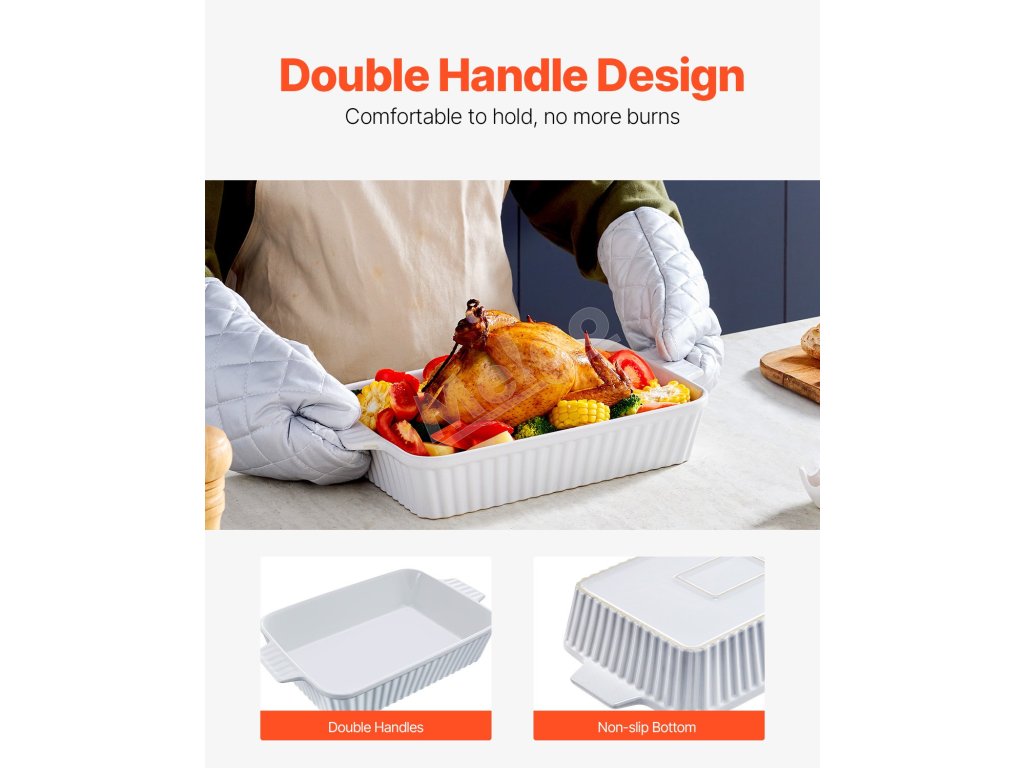 Keramický zapekací pekáč 9"×13", obdĺžnikový, hlboký, s úchytmi