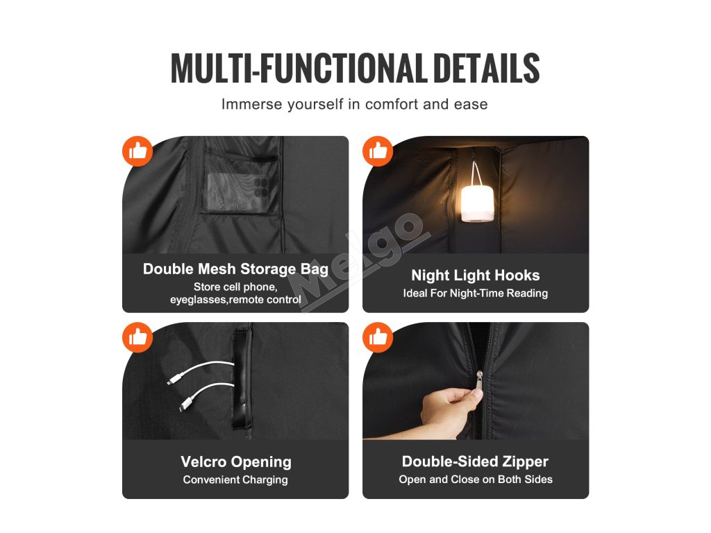 Tento 75" x 54" x 47" (1900 x 1370 x 1190 mm) je vhodný pre členov rodiny alebo priateľov na spoločné používanie, poskytuje dostatok priestoru na aktivity a odpočinok. Okrem toho veľkopriestorový dizajn znižuje pocit uzavretosti a stiesnenosti, vďaka čomu sa budete cítiť uvoľnenejšie a pokojnejšie.