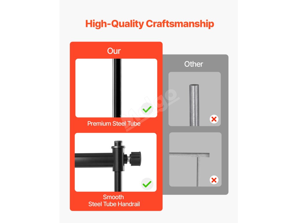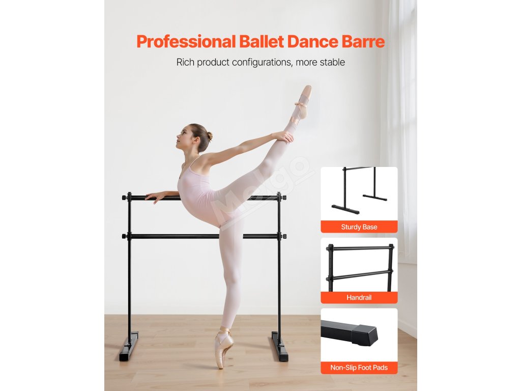 Tanečná tyč je vyrobená z prvotriedneho materiálu a vďaka kvalitným spojovacím prvkom je odolná. Protišmykové nožičky a podporné tyče tvoria pevnú konštrukciu, ktorá poskytuje dodatočnú stabilitu a odolnosť.