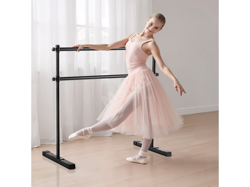 Dvojitá baletná tyč na stojanoch, výškovo nastaviteľná, proti kývaniu
