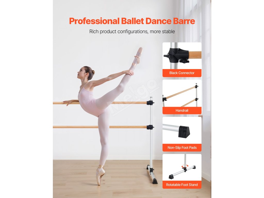 Naše tanečné barre je prenosné, nastaviteľné a ľahko použiteľné, pomáha vám zlepšiť tvar tela, držanie tela a dokonca aj rozsah pohybu. Zvyšuje tiež flexibilitu, posilňuje základné svaly a podporuje vaše celkové ciele v oblasti telesnej kondície.