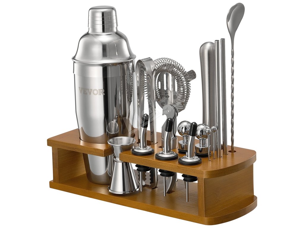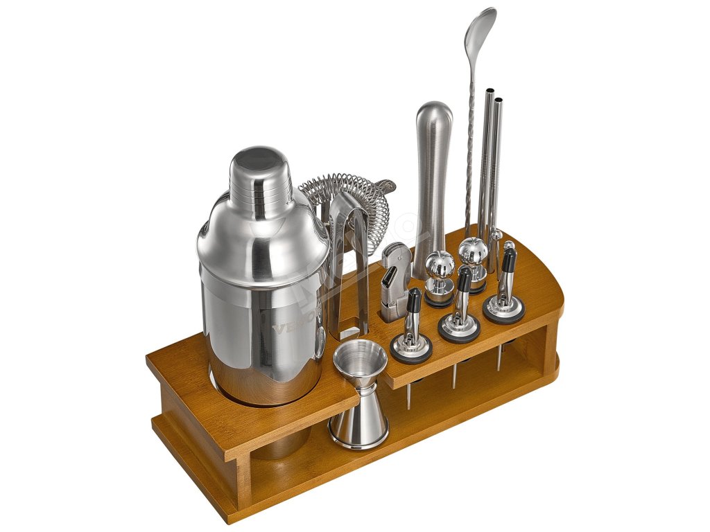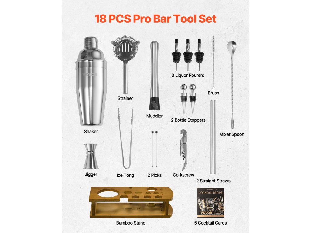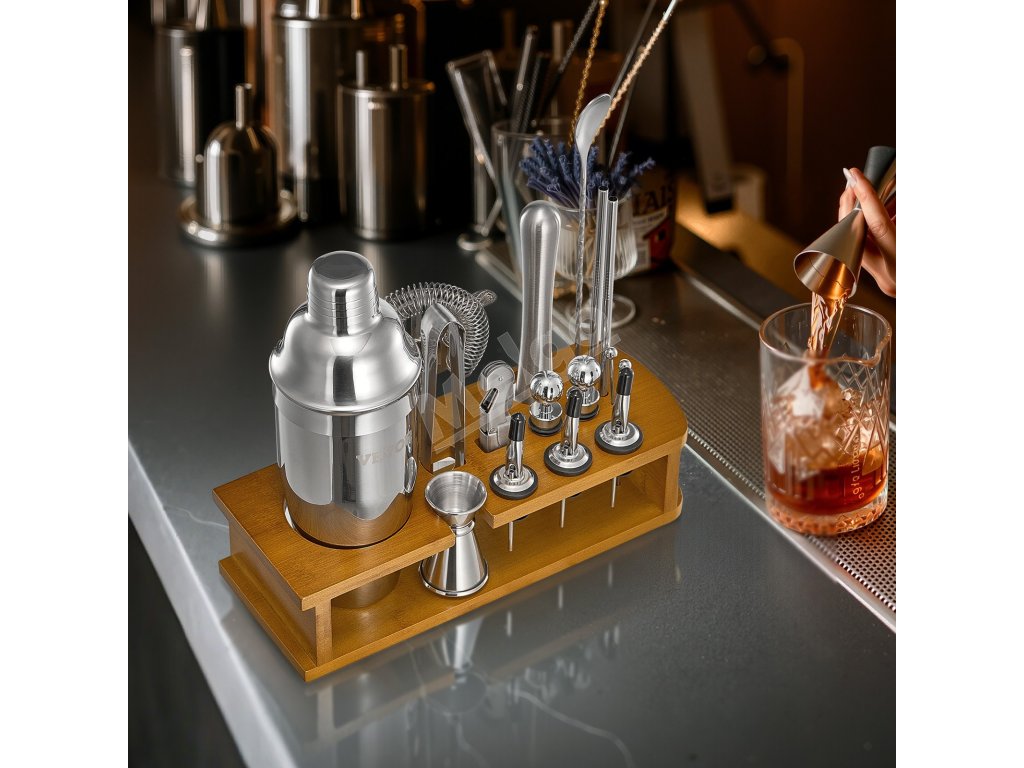 Sada barových nástrojov 18 dielov nerezová oceľ bambusový stojan