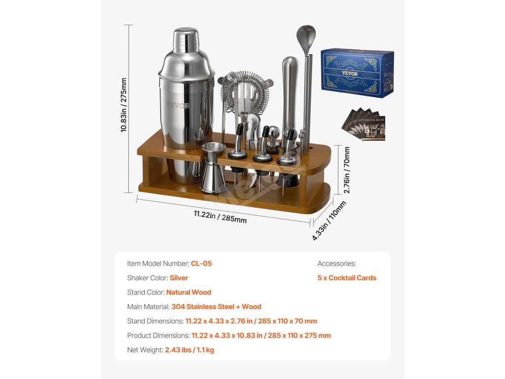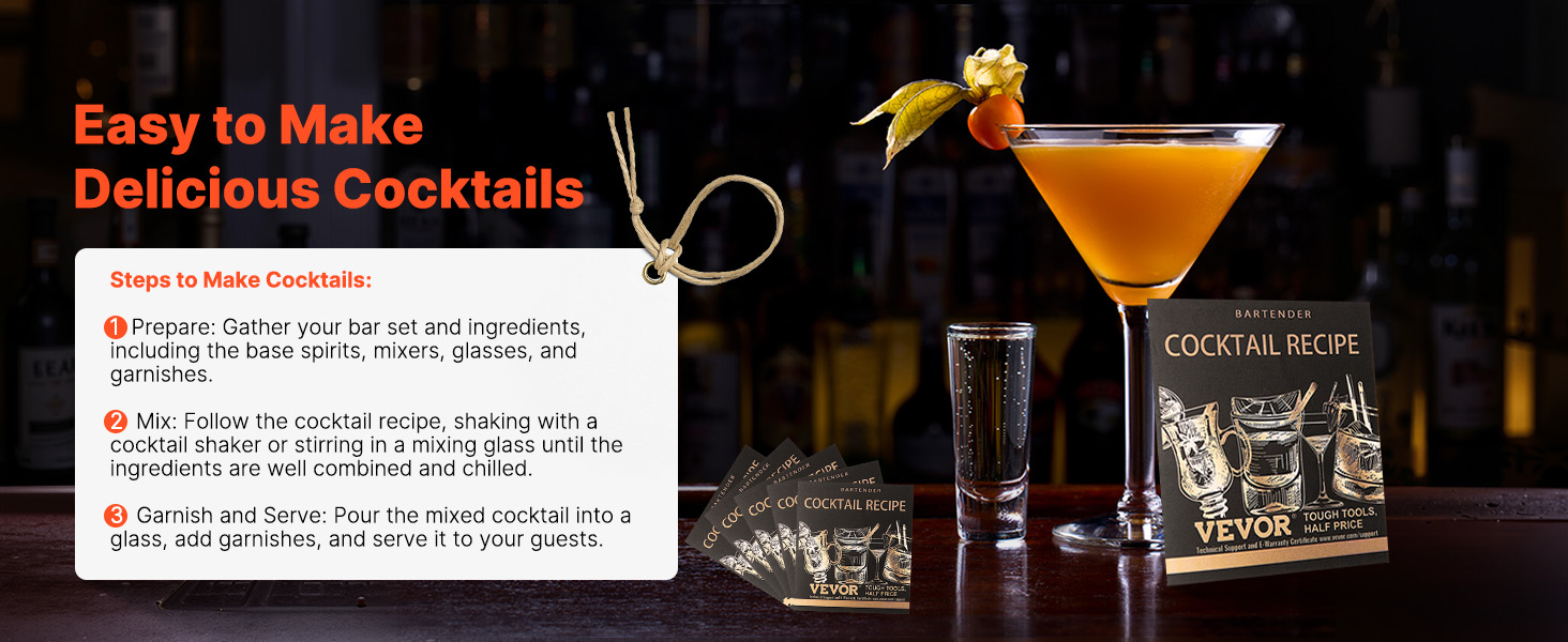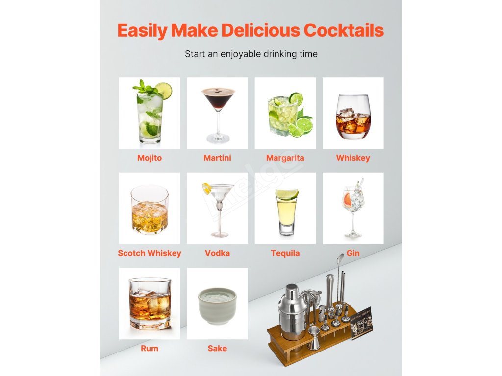 Kompletná súprava koktailových šejkrov uspokojí všetky vaše koktailové potreby, jednoducho si s ňou užite zábavu a umenie barmanského umenia.