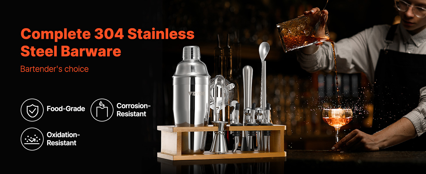 Naša súprava barového náradia je obľúbená medzi profesionálnymi barmanmi. Výnimočná odolnosť proti korózii a vysoká čistota kovu zaručujú, že si každý koktail zachová svoju autentickú chuť a vôňu.