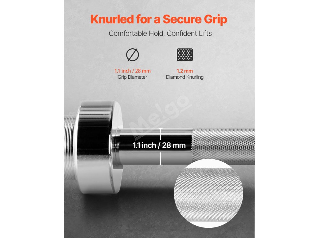 Táto bench press tyč unesie až 500 libier/226,8 kg s pevnosťou v ťahu 92 000 PSI. Vďaka mosadzným puzdrám, ihlovým ložiskám a diamantovému ryhovaniu zaručuje stabilitu, bezpečné uchopenie a pohodlnú manipuláciu na účinný silový tréning.