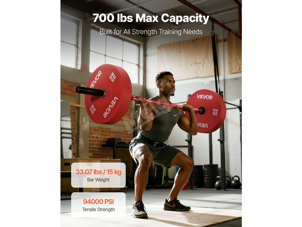 Táto bench press tyč unesie až 700 libier / 317,51 kg s pevnosťou v ťahu 94 000 PSI. Vďaka mosadzným puzdrám, ihlovým ložiskám a diamantovému vrúbkovaniu zaručuje stabilitu, bezpečné uchopenie a pohodlnú manipuláciu na účinný silový tréning.