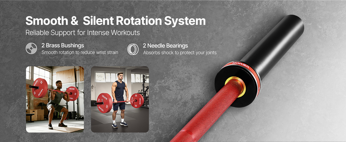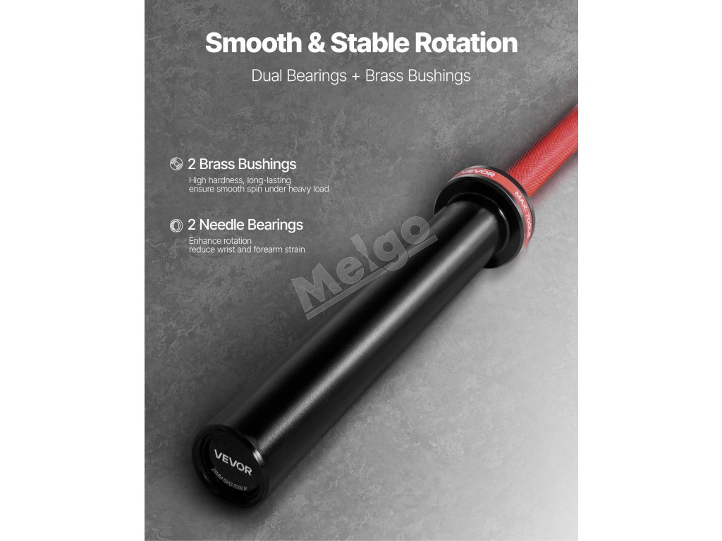 Posilňovacia tyč je vybavená 2 mosadznými puzdrami a 2 ihličkovými ložiskami na hladké a tiché otáčanie. Vďaka tomu sa znižuje namáhanie zápästia a predlaktia, chránia sa kĺby a dosahuje sa konzistentný výkon pri tlaku na lavičke, drepoch a iných ťažkých zdvihoch.