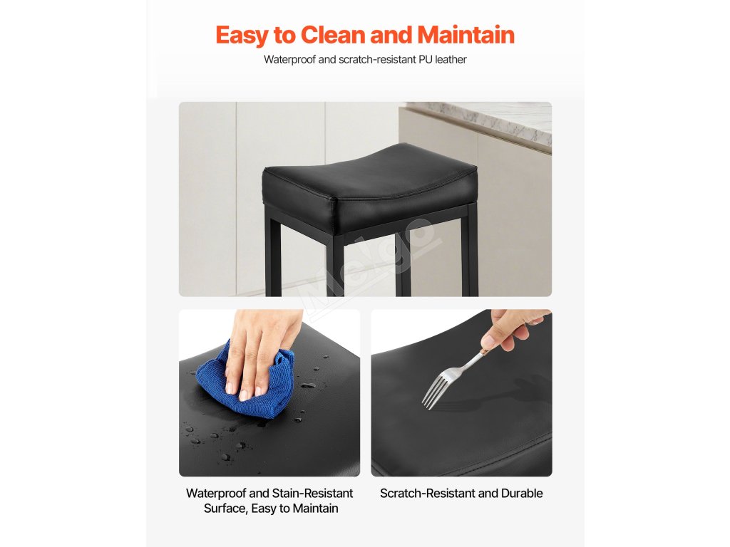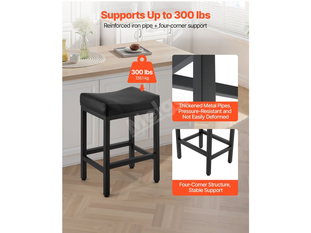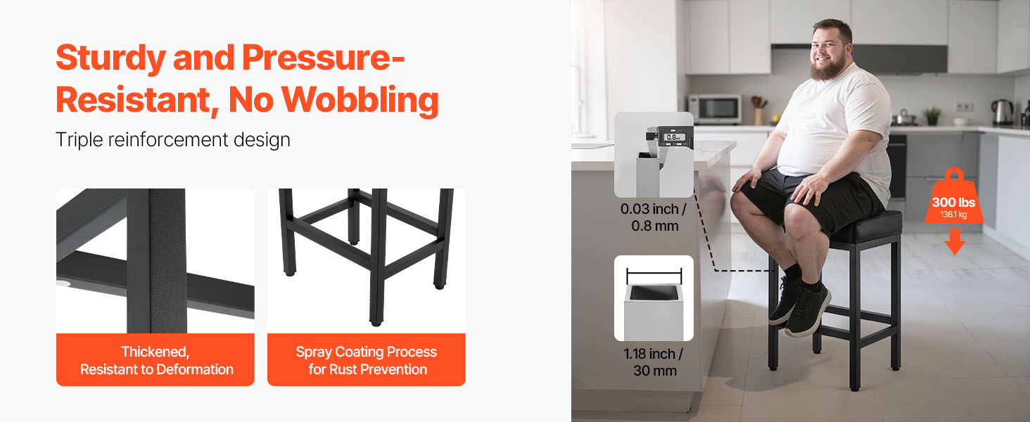 Vďaka zhrubnutým železným rúrkam a štvorhrannej stabilnej konštrukcii ponúka táto barová stolička ku kuchynskej linke výnimočnú oporu, ktorá zabraňuje kolísaniu alebo prehýbaniu. Je vybavená procesom striekania odolného proti korózii, čo zabezpečuje väčšiu stabilitu a odolnosť.