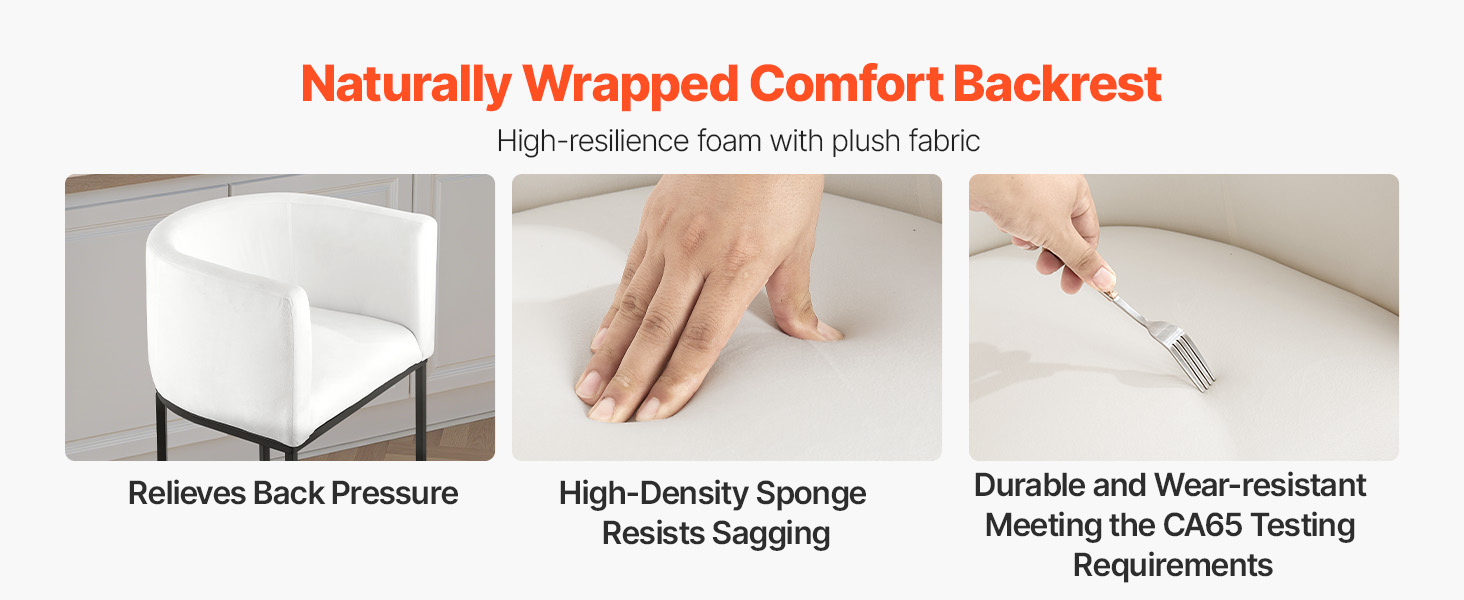 Ostrovná barová stolička je vyplnená vysokoelastickou kompozitnou penou pre hrubé a pohodlné sedadlo, ktoré nevytvára tlakové body počas dlhého sedenia.