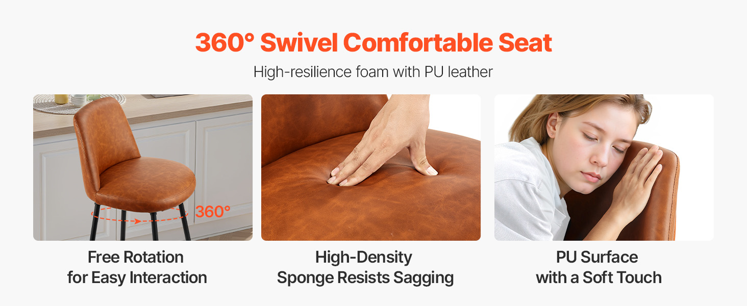 Ostrovná barová stolička je vyplnená vysokoelastickou kompozitnou penou pre hrubé a pohodlné sedadlo, ktoré nevytvára tlakové body počas dlhého sedenia. Vďaka 360° otočnej konštrukcii je konverzácia pohodlnejšia a komfortnejšia.