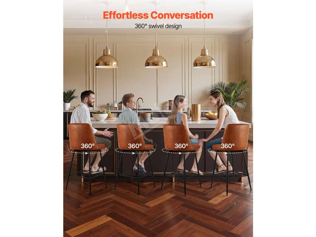 Ostrovná barová stolička je vyplnená vysokoelastickou kompozitnou penou pre hrubé a pohodlné sedadlo, ktoré nevytvára tlakové body počas dlhého sedenia. Vďaka 360° otočnej konštrukcii je konverzácia pohodlnejšia a komfortnejšia.