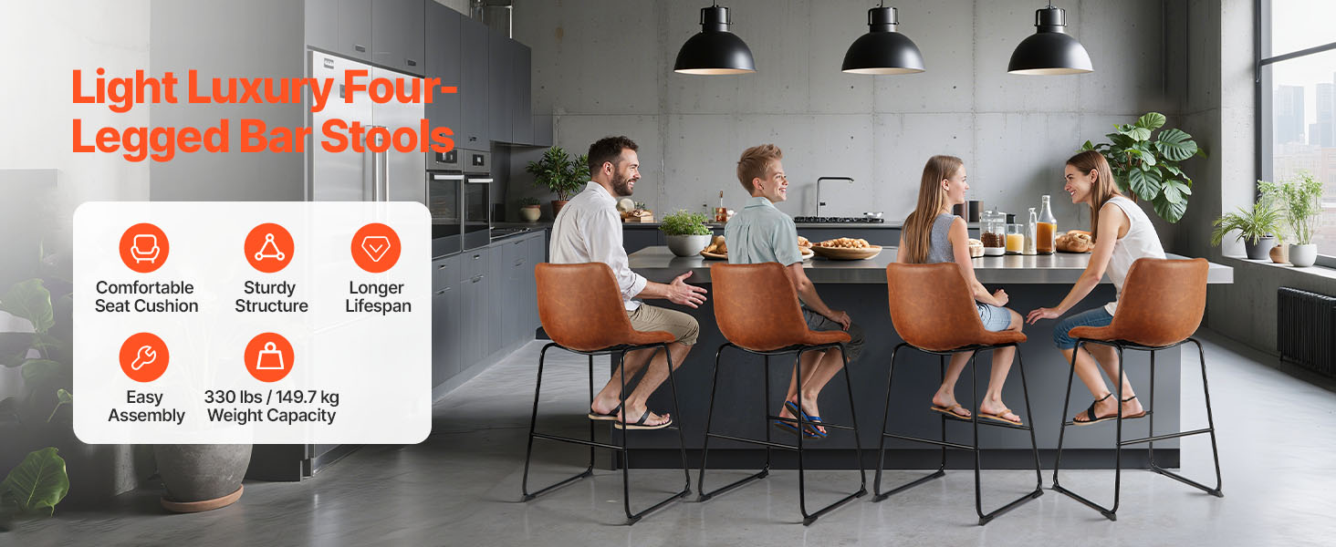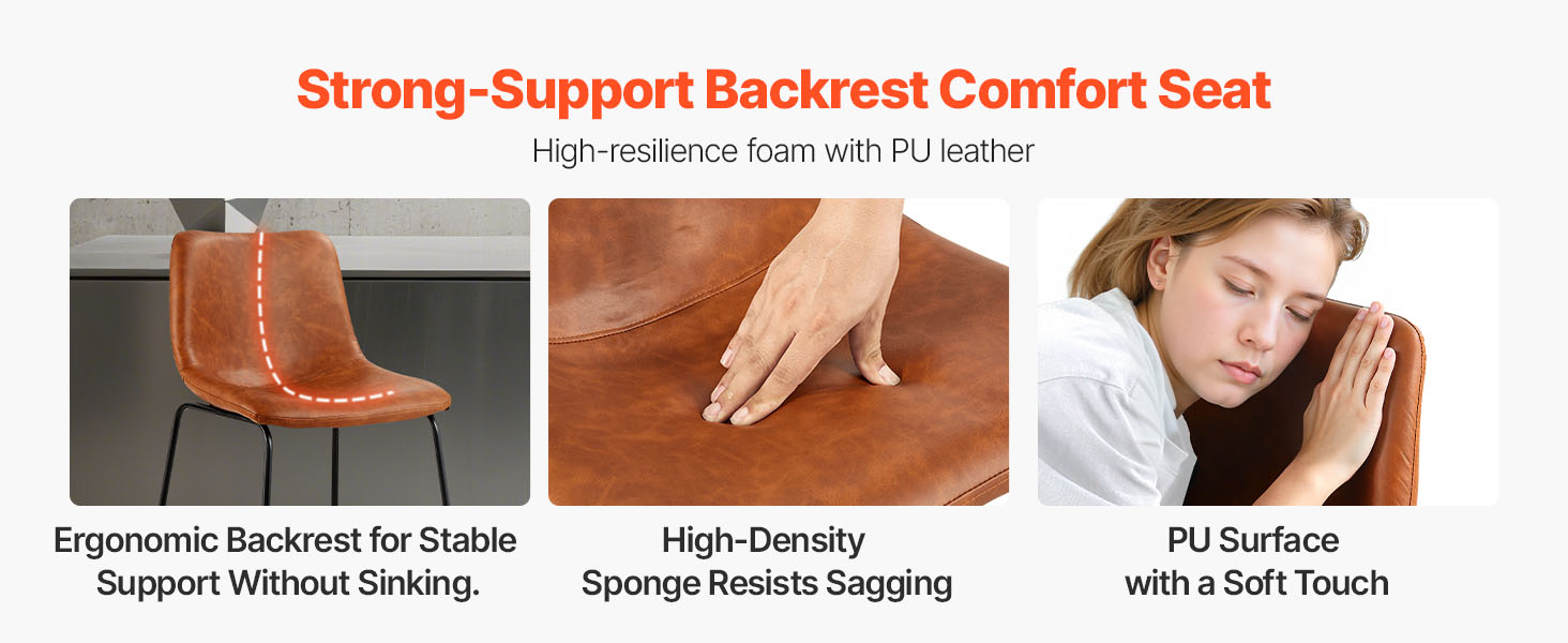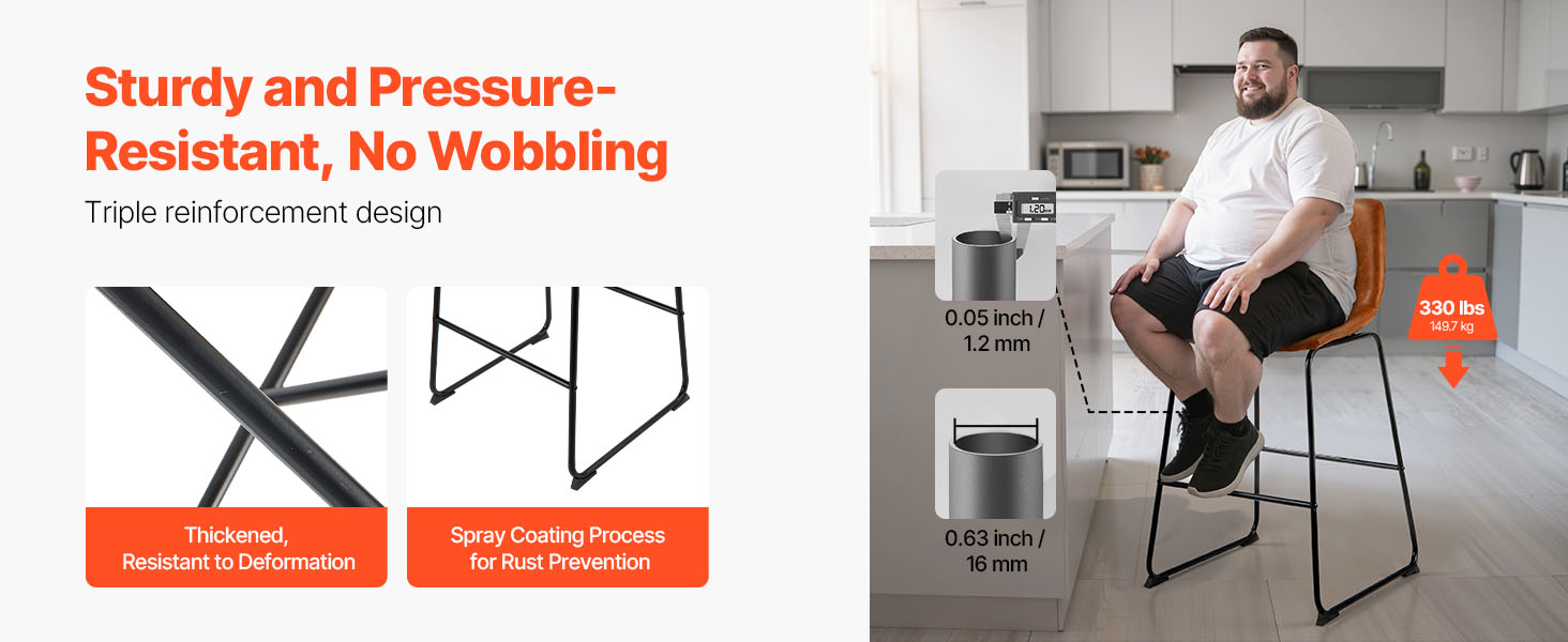 Vďaka zhrubnutým železným rúrkam a stabilnej konštrukcii so štyrmi rohmi ponúka táto barová stolička ku kuchynskej linke výnimočnú oporu, ktorá zabraňuje kolísaniu alebo prehýbaniu. Je vybavená procesom striekania odolného proti korózii, čo zabezpečuje väčšiu stabilitu a odolnosť.