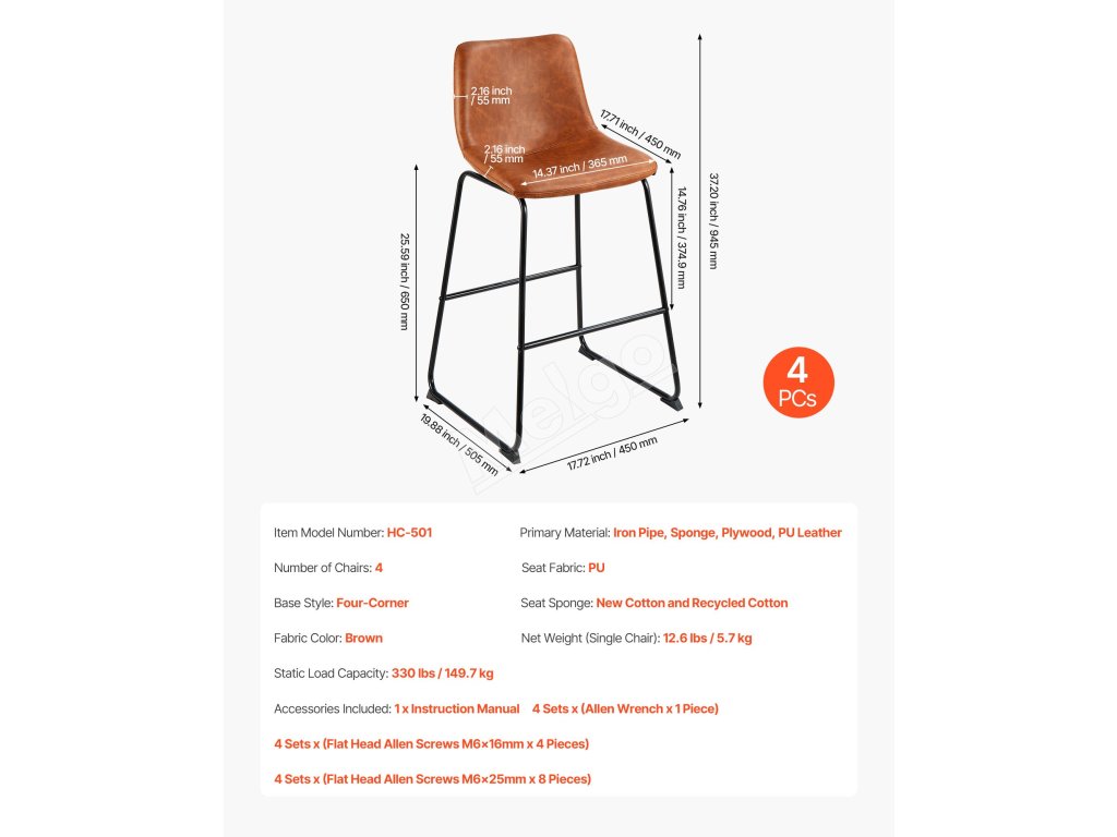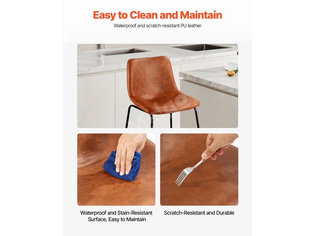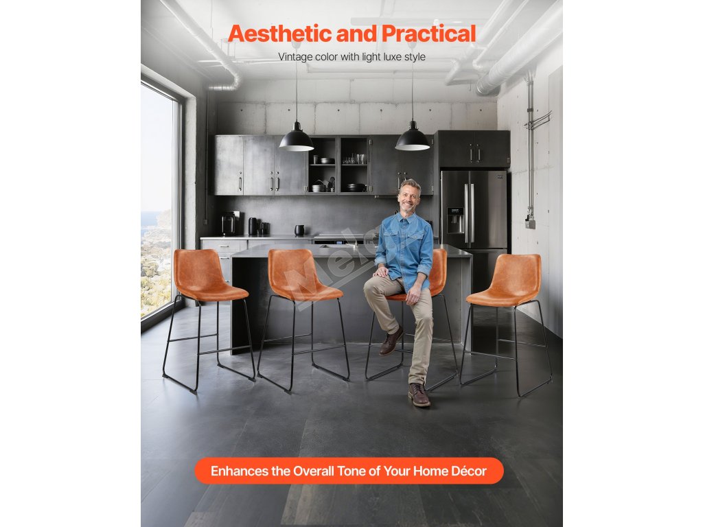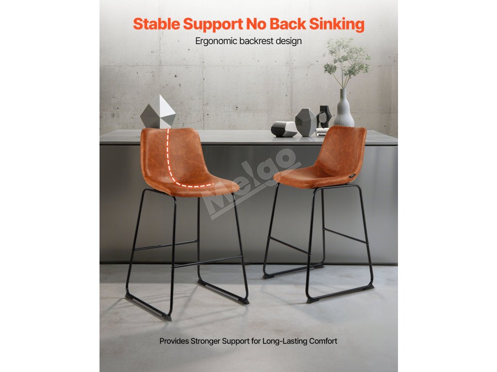 Vďaka zhrubnutým železným rúrkam a stabilnej konštrukcii so štyrmi rohmi ponúka táto barová stolička ku kuchynskej linke výnimočnú oporu, ktorá zabraňuje kolísaniu alebo prehýbaniu. Je vybavená procesom striekania odolného proti korózii, čo zabezpečuje väčšiu stabilitu a odolnosť.
