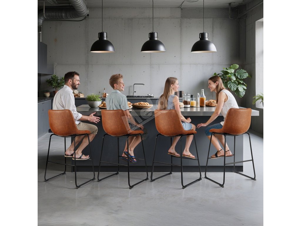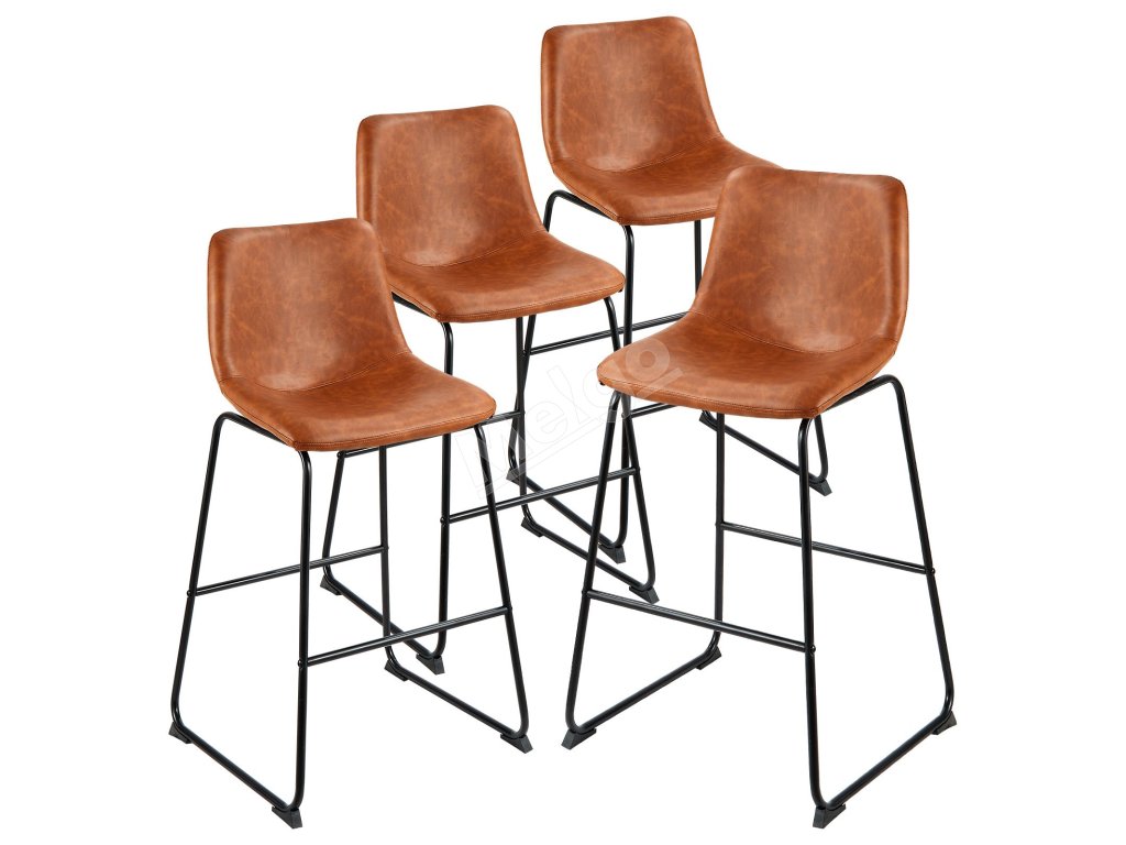 Barové stoličky sada 4, 65 cm, pu koža, opierka, kovové nohy, hnedé