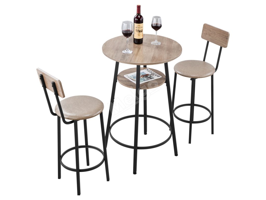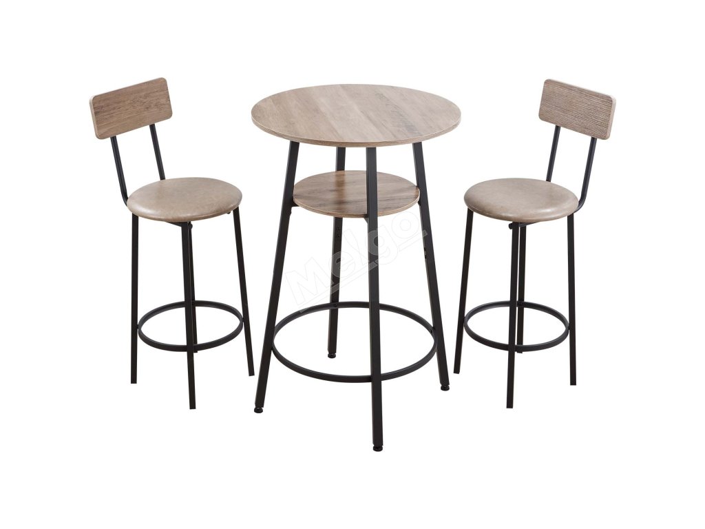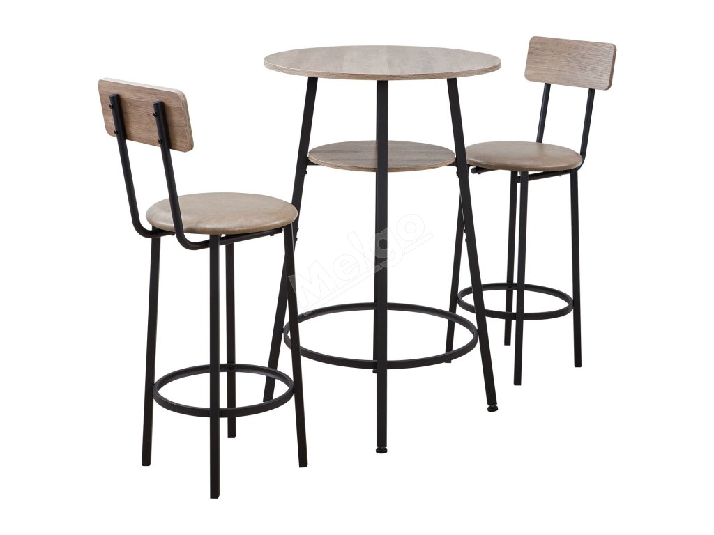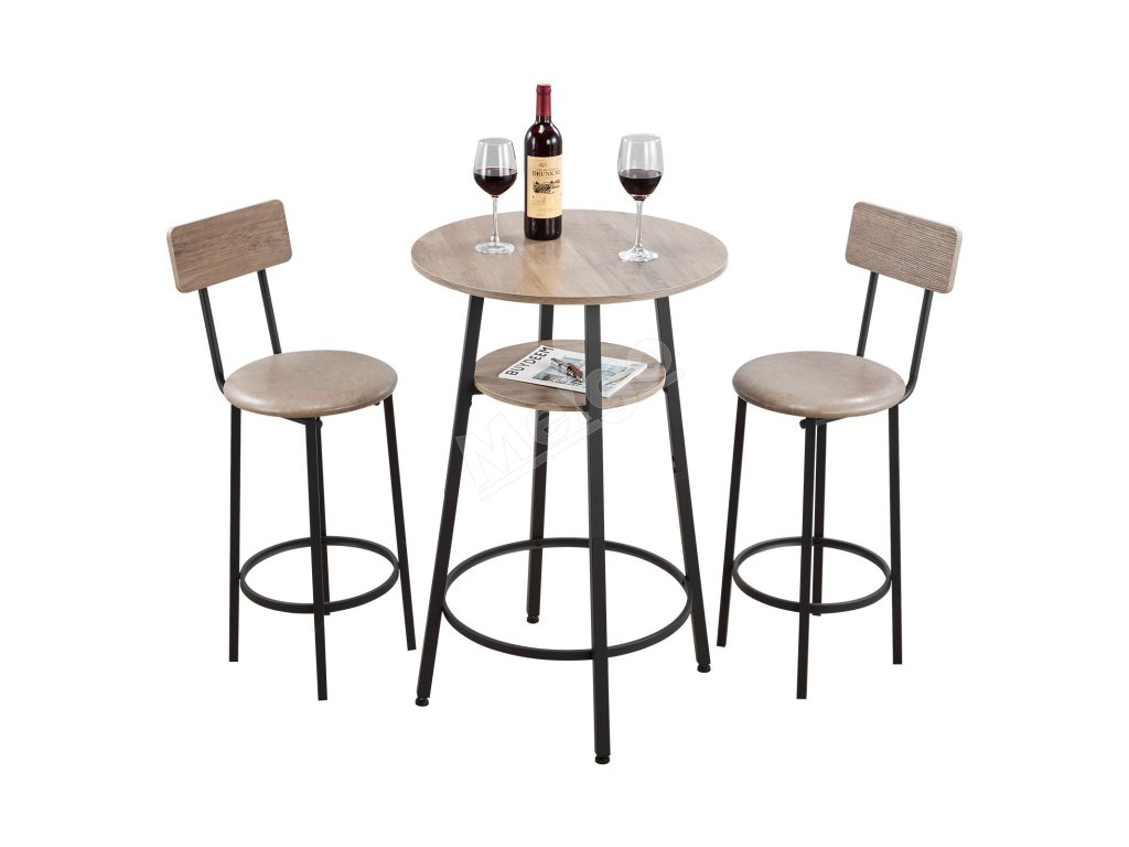 Barový stôl s 2 stoličkami, 3 ks, 596,9 mm, zaoblené rohy, svetlošedý