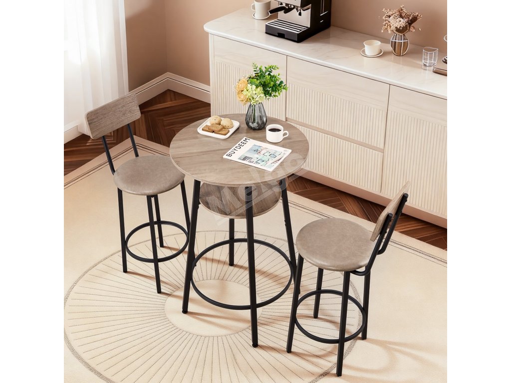 Tento multifunkčný okrúhly barový stôl a stoličky sa vyznačujú flexibilným dizajnom, ktorý sa ľahko prispôsobí rôznym domácim scenárom, ako je pracovný priestor, kútik na raňajky alebo minibar. Či už na stolovanie, pitie alebo dočasné použitie v kancelárii, poskytuje praktické riešenie.