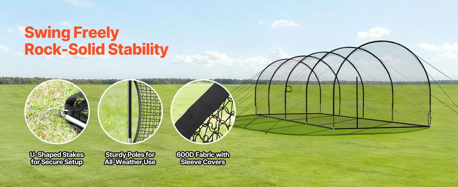Táto softbalová odpaľovacia klietka, skonštruovaná na vysokorýchlostný tréning, zvládne nadhody z nadhadzovacieho stroja s rýchlosťou až 90 km/h. Je vybavená viacerými zemnými kolíkmi pre väčšiu stabilitu a poskytuje spoľahlivú konštrukciu pre opakované švihy a rýchle tréningy.