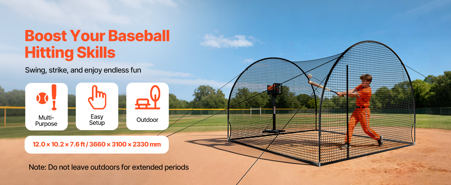 Táto kvalitná bejzbalová klietka zlepšuje techniku švihu, reflexy a sústredenie, či už ide o začiatočníka alebo skúseného hráča. Je skonštruovaná na každodenné intenzívne používanie a prináša tréning na profesionálnej úrovni na váš dvor, do školy alebo do krytej telocvične. Je trvanlivá a odolná proti roztrhnutiu, zostáva stabilná pri rýchlych nadhodoch a silných úderoch.