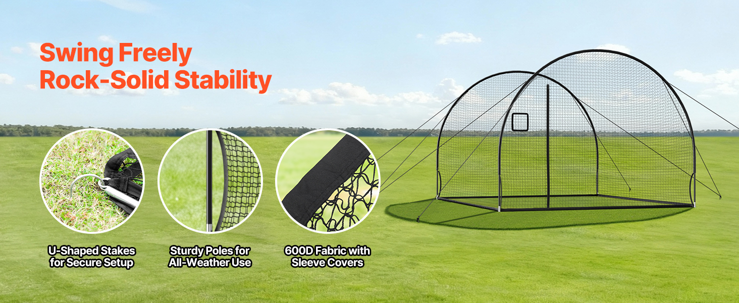 Táto prenosná odpaľovacia klietka je vyrobená z prvotriednych sklolaminátových tyčí, ktoré sú tepelne vytvrdené na dosiahnutie pevnosti. Vystužené spoje udržujú tyče neporušené, čím sa minimalizuje riziko zrútenia pri veternom počasí alebo intenzívnom používaní. Jej odolná konštrukcia poskytuje stabilný, neprerušovaný tréning pre všetkých hráčov.