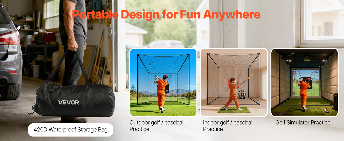 Naša golfová odpalová klietka je vyrobená z odolného polyesteru a zachováva si pevnosť za všetkých podmienok. Jej sieťovina odolná proti oderu a korózii poskytuje spoľahlivý výkon pri dlhších tréningoch v interiéri alebo exteriéri.