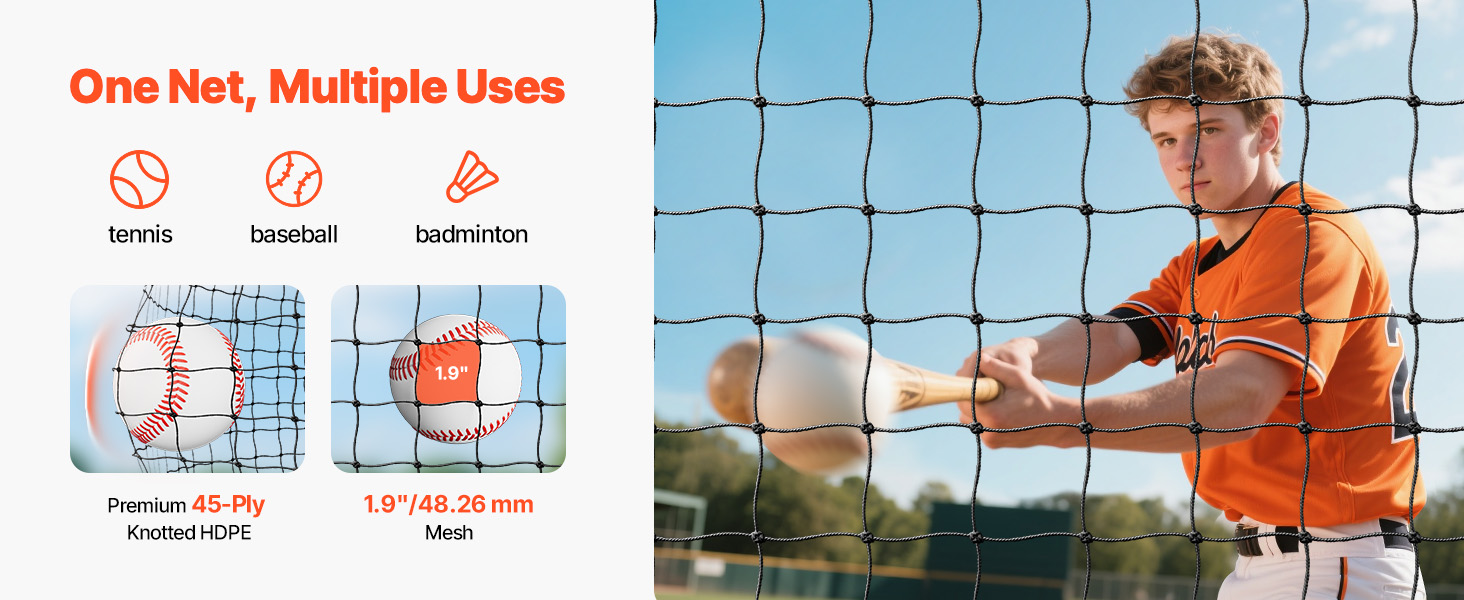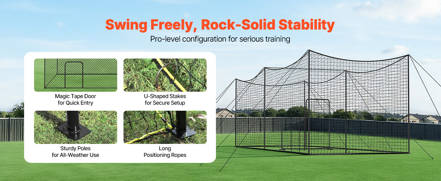 Táto voľne stojaca prenosná odpalovacia klietka je vyrobená z vystuženej HDPE siete a ponúka jemné oká, ktoré zvládajú silné nárazy baseballovej lopty. Materiál ošetrený proti slnečnému žiareniu si zachováva svoje vlastnosti aj na slnku, čím zaisťuje dlhú životnosť a spoľahlivé použitie pri tréningoch v interiéri aj exteriéri.
