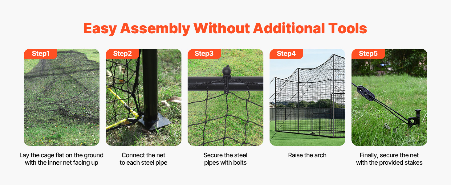 Naša sieť na baseballovú odpalovú klietku má jednoduchý dizajn a jasné pokyny, čo umožňuje rýchlu inštaláciu za pár minút. Všetky potrebné časti sú súčasťou balenia a priložené karabínové háčiky uľahčujú použitie pri tréningoch v interiéri aj exteriéri.