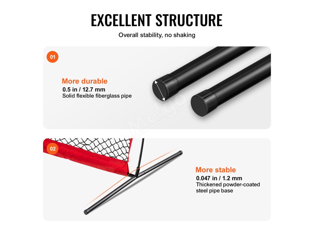 Táto ochranná sieť na bejzbal sa môže pochváliť vynikajúcou stabilitou a odolnosťou. Materiál z oceľových rúrok dokáže odolať obrovskej nárazovej sile, ktorá vzniká pri hode loptičky nadhadzovačom, a zaručuje, že sa sieťka v dôsledku nadmernej sily nenakloní ani nedeformuje.