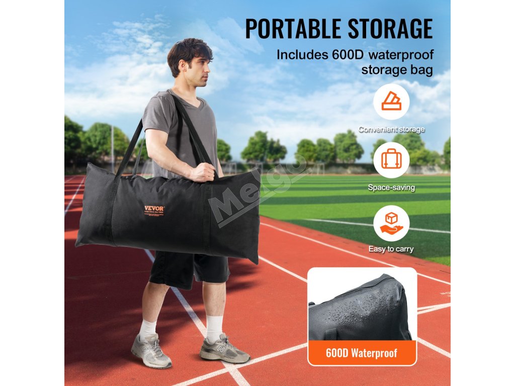 Dodáva sa s nepremokavou úložnou taškou 600D na jednoduchú demontáž a skladovanie, vďaka čomu je táto ľahká tréningová sieť prenosná na rôzne športoviská.