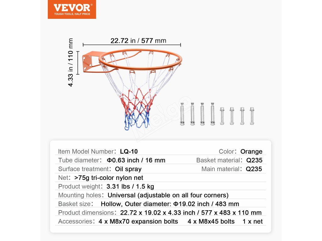 Obruč na basketbal 18" ohybná q235 oceľ na stenu a dvere s sieťou