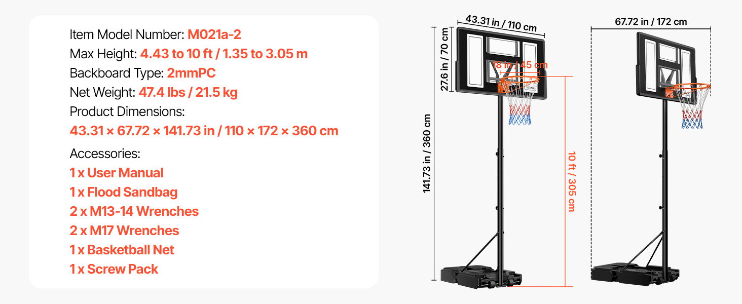 Náš prenosný vonkajší basketbalový kôš má rozmery 43,3 x 67,7 x 141,7 palca/1100 x 1720 x 3600 mm, takže je ideálny na basketbalový tréning. Jeho spoľahlivý výkon umožňuje hráčom všetkých vekových kategórií užívať si sebavedomé strely a vytvárať aktívne a pútavé herné sedenia v akomkoľvek domácom prostredí.