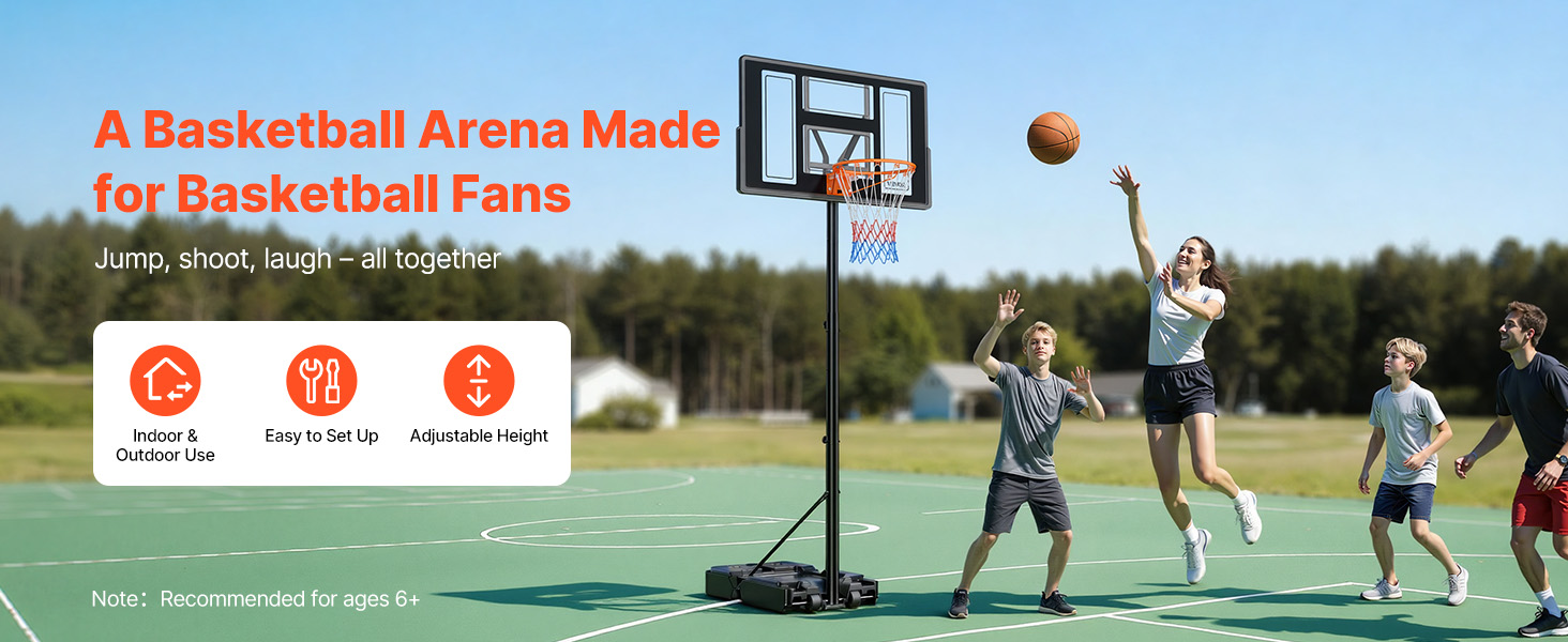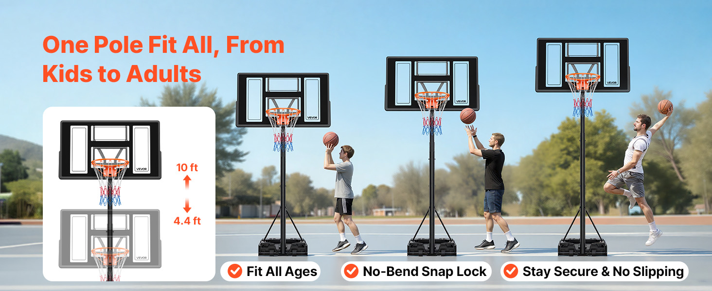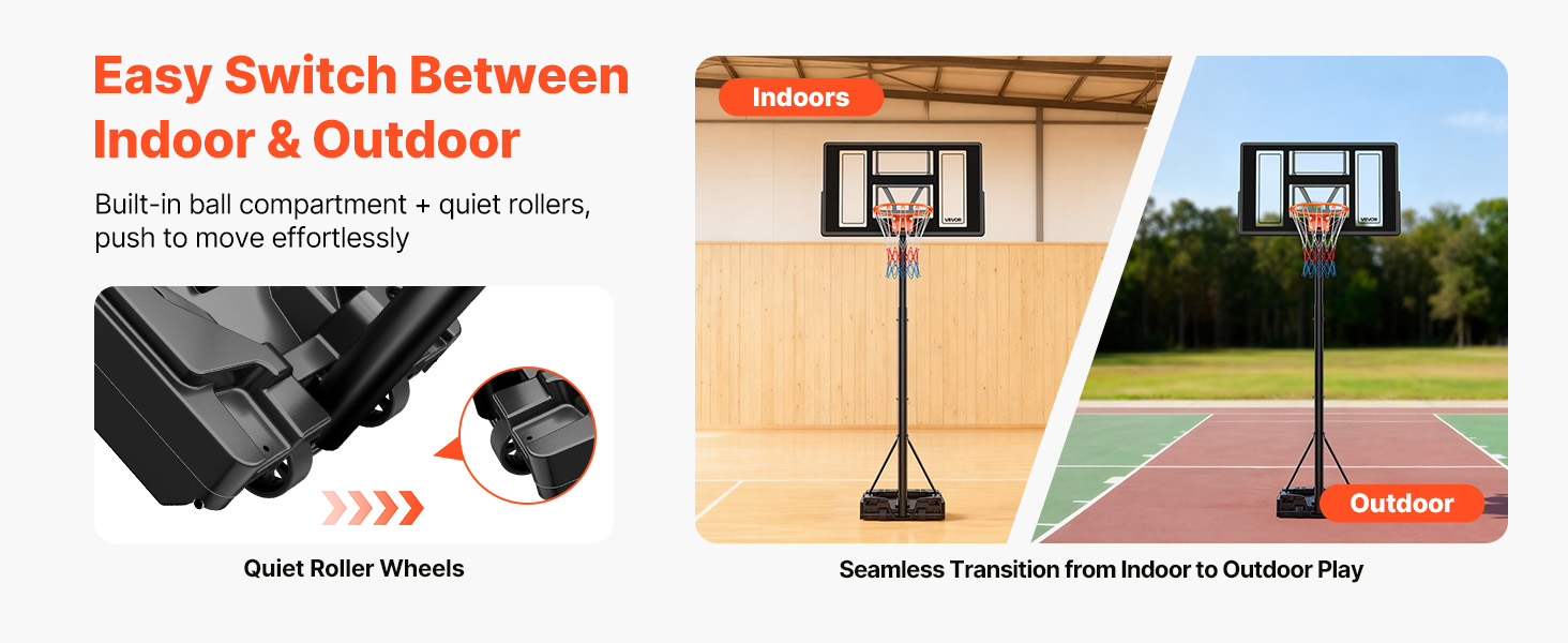 Vďaka kompletným inštalačným nástrojom môžu náš prenosný basketbalový obruč rýchlo zostaviť aj začiatočníci. Dvojbrzdové kolieska umožňujú pohyb o 360°, vďaka čomu ho môžete umiestniť kamkoľvek. Vytvorte si na dvore, v garáži alebo v domácej telocvični basketbalové tréningové miesta v profesionálnom štýle za pár minút.