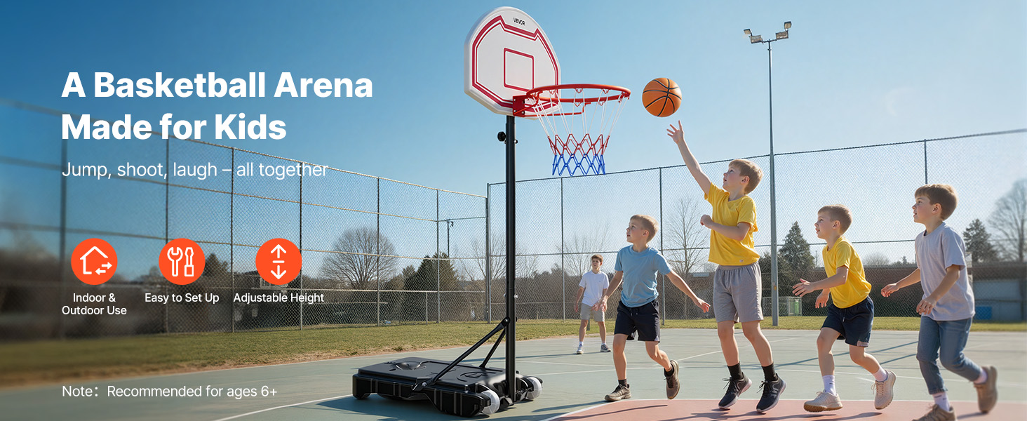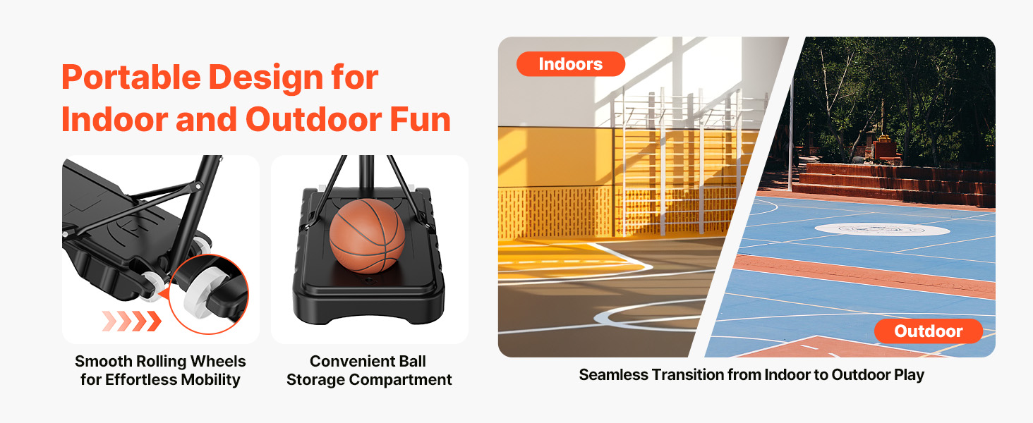 S týmto prenosným vonkajším basketbalovým košom si môžete vziať hru kamkoľvek. Jeho prenosná konštrukcia umožňuje rýchle premiestnenie na hranie na dvore, príjazdovej ceste alebo v parku. Obruč je ľahká a zároveň pevná, ľahko sa presúva, takže si môžete basketbal užiť kedykoľvek a ponúka flexibilné sedenia plné zábavy pre deti aj dospelých.