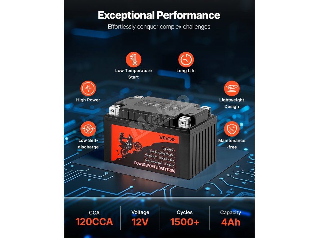 Stabilný výkon v každom prostredí! Či už jazdíte na dune buggy v horúčavách, na snežnom skútri v chladnom počasí alebo na vodnom skútri na vode, táto batéria pre motorové športy poskytuje všade špičkový výkon.