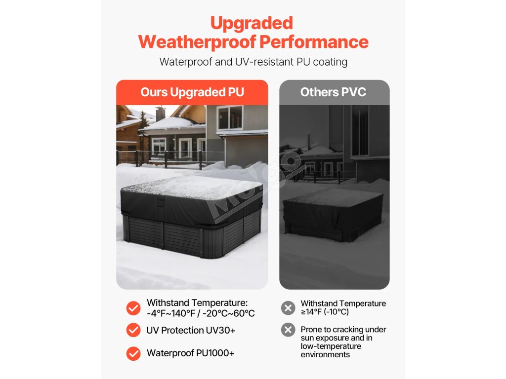 Kryt vírivky 93×93×20in/2362×2362×508mm 600d 950n štvorcový vodeodolný