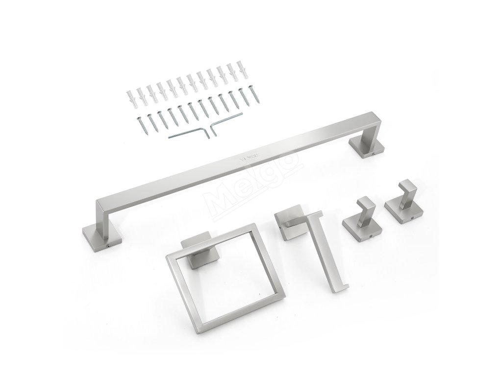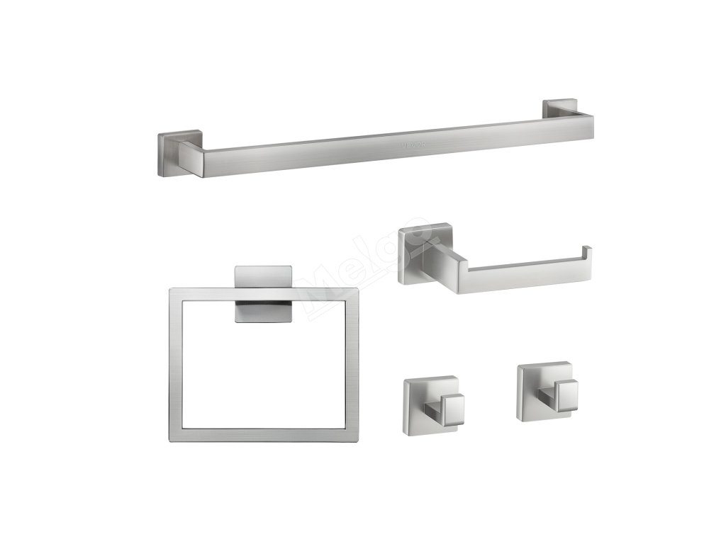 Kúpeľňová sada 5 dielov nerez, vešiak 24 inch, 2 háčiky, držiak papiera