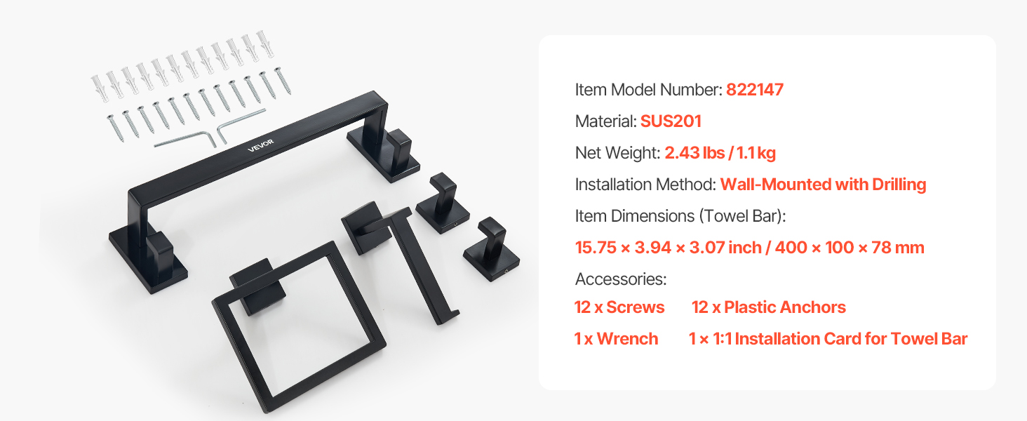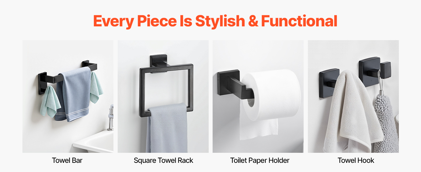 Vďaka klasickému minimalistickému dizajnu sa táto súprava držiakov na uteráky bez problémov kombinuje s rôznymi kúpeľňovými dekormi a prináša nadčasovú eleganciu.