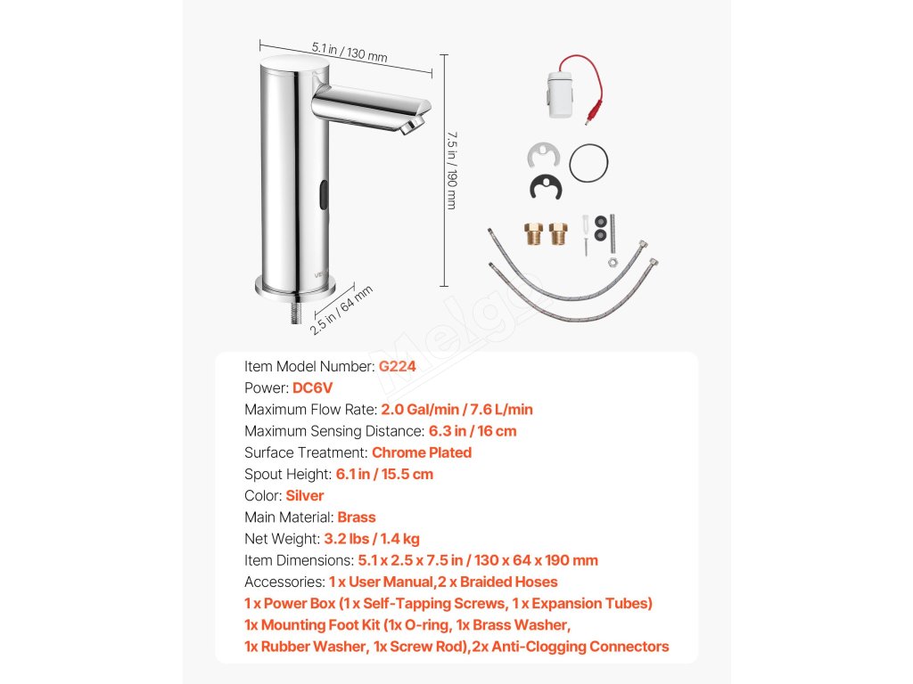 | Výška výtoku | 6.1 palec / 15,5 cm |