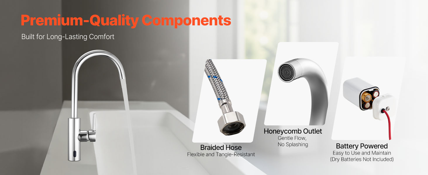 Táto batéria je vyrobená z odolných materiálov a pružnej opletenej hadice, ktorá je odolná voči prehýbaniu, a zaručuje plynulú dodávku vody. Voštinový perlátor zjemňuje prúd a znižuje špliechanie pre lepší zážitok z umývania