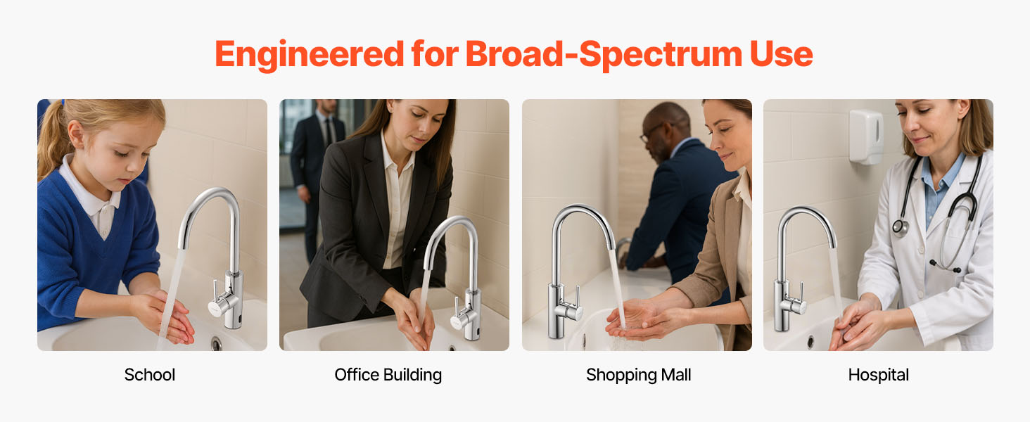 Táto komerčná drezová batéria má elegantný, moderný povrch a je vhodná do širokého spektra prostredí vrátane domácností, kancelárií, hotelov, reštaurácií a zdravotníckych zariadení.