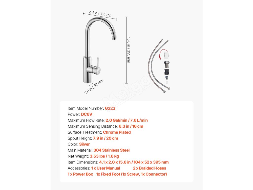 | Výška výtoku | 7.9 palcov / 20 cm |