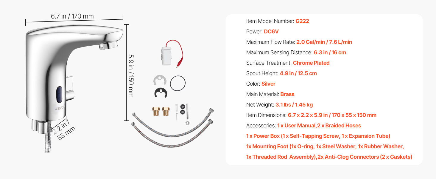 | Výška výtoku | 4.9 palcov / 12,5 cm |