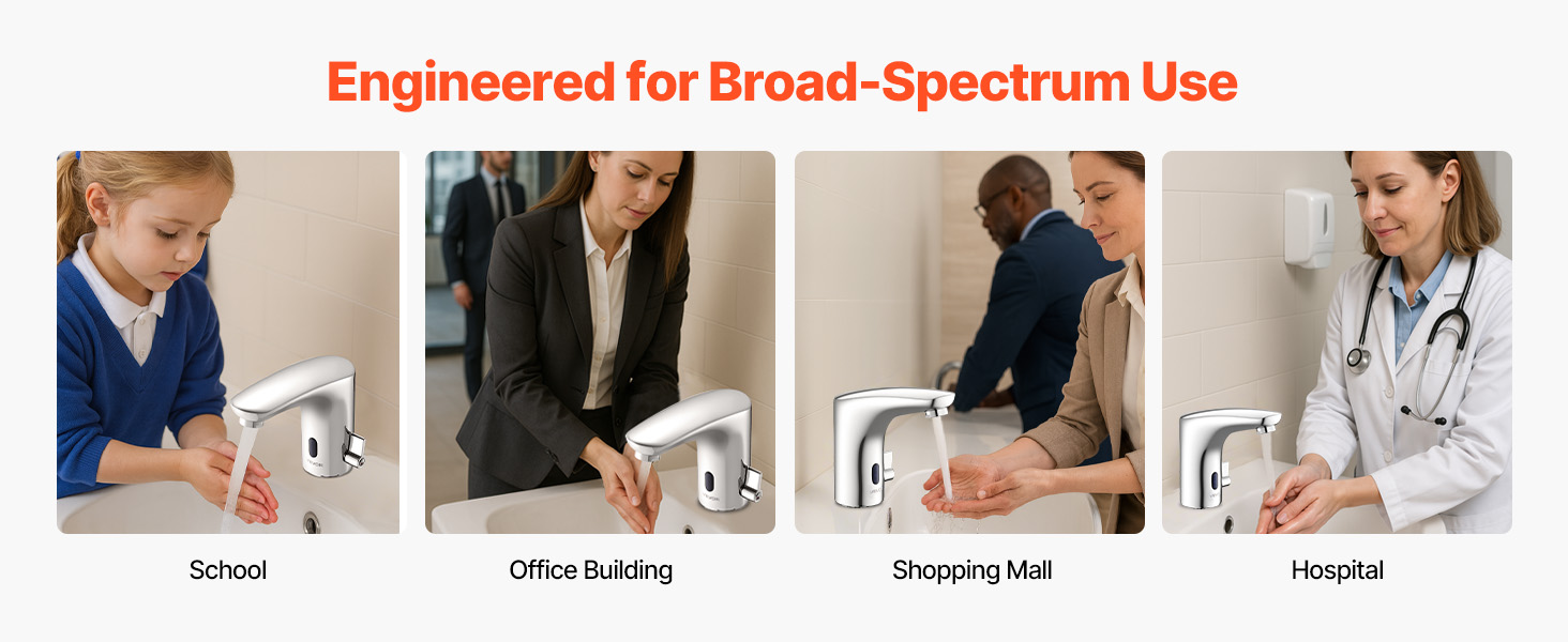Táto komerčná umývadlová batéria má elegantný, moderný povrch a je vhodná do širokého spektra prostredí vrátane domácností, kancelárií, hotelov, reštaurácií a zdravotníckych zariadení.
